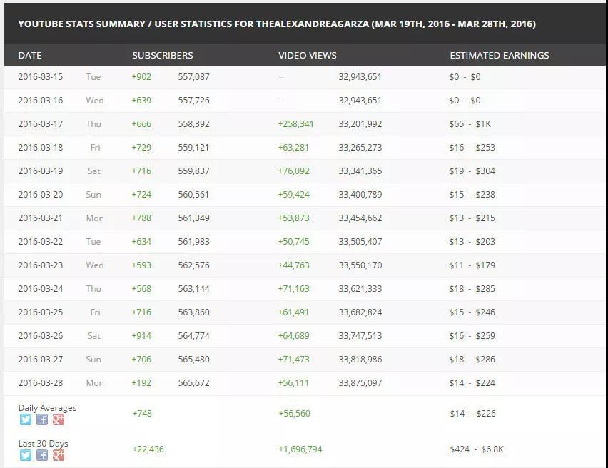 Socialblade(http://socialblade.com/ )這個工具可以幫助我們更好的了解Youtube紅人的各項數據,另外還可以查看Instagram,Twitch的頻道數據。如圖3-圖5: